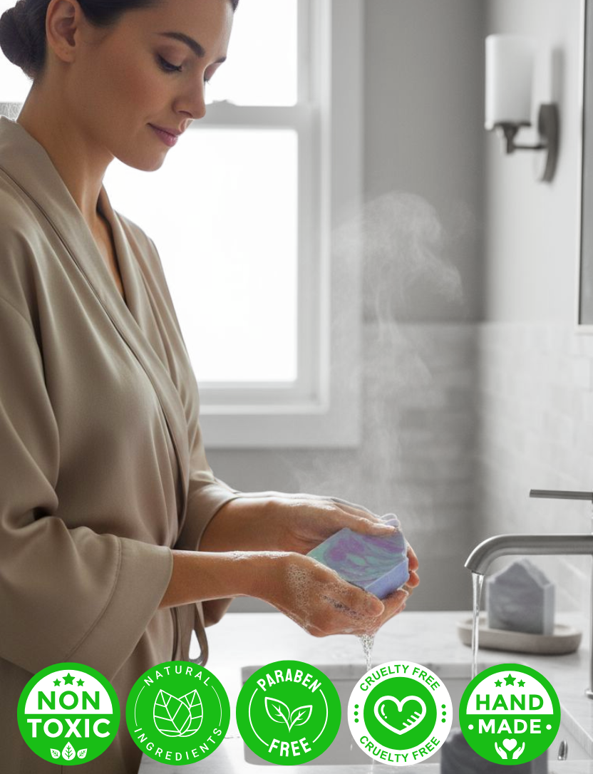Infused with rich botanical and skin-loving natural oils, this soap gently cleanses while helping to restore moisture and softness.